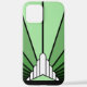 An iconic pattern of the sun rising from behind a stylised art deco shaped building. A simple yet elegant design, true to the era.