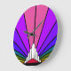 An iconic pattern of the sun rising from behind a stylised art deco shaped building. A simple yet elegant design, true to the era.