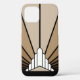 An iconic pattern of the sun rising from behind a stylised art deco shaped building. A simple yet elegant design, true to the era.