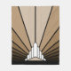 An iconic pattern of the sun rising from behind a stylised art deco shaped building. A simple yet elegant design, true to the era.