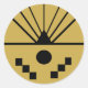 An art deco black sun rises on a golden field. Round envelope seal/sticker.
