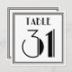Art Deco "Gatsby" inspired frame elegantly surrounds this table number card, perfect for both parties and wedding receptions needing table numbers. Set the mood in style. Purchase as many cards as you need, they are pre-designed for you, saving you the need to try to customise them yourself.