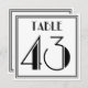 Art Deco "Gatsby" inspired frame elegantly surrounds this table number card, perfect for both parties and wedding receptions needing table numbers. Set the mood in style. Purchase as many cards as you need, they are pre-designed for you, saving you the need to try to customise them yourself.