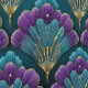 This vibrant Art Deco pattern layers teal and purple fan shapes accented with fine gold detailing, creating a rich, dimensional look inspired by classic 1920s design. The repeating scalloped motif feels both luxurious and playful, blending jewel-tone colors with metallic highlights for a dramatic, modern twist on vintage glamour.