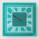 Art Deco, teal blue, 3-d effect wall clock with white numbers - digital graphics