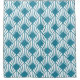 This shower curtain has an art deco design of diamonds with diagonal lines that look like fans in teal on a field of white.