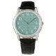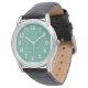 This men's watch has an Art Deco design made from a right angle with a maze set inside in teal on a field of sea green.