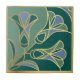 Art Deco tile stylised floral pattern with bluebells. Imitation tiles with gold outline