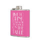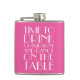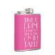 This is a fun and flirty flask that says, "Time to Drink Champagne and Dance on the Table" in an art deco style type, on a bright pink background, making it a perfect 21st birthday gift, holiday gift, bridesmaid gift or bachelorette gift.