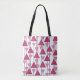 This tote bag has an art deco design of triangles strung on lines in two shades of pink.
