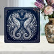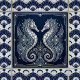 Art Deco Two Seahorses Mother of Pearl Blue Ceramic Tile