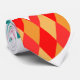 This necktie has an Art Deco design of hearts made from diamonds together in shades of pink, blue, green, gold, and red.