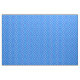 Art Deco geometric wallpaper pattern fabric in cobalt and ocean blue with white on a cerulean / sea blue background