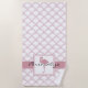 This design features a flamingo in Art Deco style. The beautiful tropical bird design with a pink and white wave pattern makes a modern and unique beach towel with personalised text.