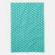 An Art Deco pattern kitchen towel based on the traditional wave pattern, often seen in Japanese textiles, in shades of turquoise, peacock and aquamarine blue