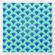 An Art Deco pattern glass coaster based on the traditional wave pattern often seen in Japanese textiles, in shades of turquoise and cobalt blue