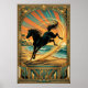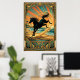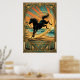 Art Deco Wild Horse Beach Sunset Teal Orange Poster