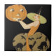 Art Deco Witch Jack O Lantern Pumpkin Black Cat Ceramic Tile