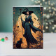 Art Deco Witch with Black Cat and Full Moon Foil Holiday Card