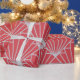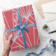 This wrapping paper has an Art Deco design of diamonds and triangles in silver on a field of burgundy.