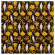 ART DECO YELLOW FLOWERS,WHITE PARROTS ON BLACK FABRIC