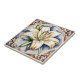 The centerpiece of each tile features a resplendent lily motif, rendered with meticulous attention to detail. The lilies, known for their symbolism of purity and renewal, are depicted in full bloom, their petals gracefully curving and intertwining with one another. The organic lines of the lily contrast perfectly with the geometric shapes surrounding it, creating a visually striking and balanced composition.