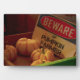 Plaque shown in a 5x7 size with a photo print of a beware of pumpkin farmer.