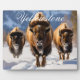 Plaque is shown with a photo print of buffalo in Yellowstone Park.