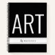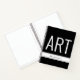 Personalised notebook in black and white to use as art or drawing sketchbook with a huge minimal title of "Art by Your Name" printed on the cover in a modern sans serif font.