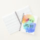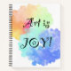 Art is joy on a notebook. Bright, colourful, watercolor style, pastel clouds, bloom as a background to fun black text. Inspirational happy words over a bright rainbow cloud.