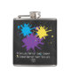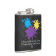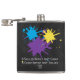 The flask itself is fine. It’s a cheap flask, obviously bought in bulk, however am prepared to overlook that. Given that it is a personalized item, I would have liked to have seen gift boxing instead of the generic packaging. Terrible printing, and/or quality. It’s a cheap, tacky vinyl. It is not cut straight and is also applied in a way that it is overhanging the bottom, causing the glue to catch on items and it will eventually roll and tear, damaging the wrap.