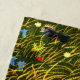 Swiss artist Ernst Kreidolf was known for his nature and fairy illustrations, showing an unusual level of knowledge about the natural world. This illustration features two varieties of native butterflies, bluebells or harebells, and wild strawberries, as well as ferns, dandelions, and mossy rocks