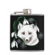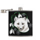 An Arctic fox gazes outward in this Art Nouveau inspired portrait. Four snowdrop flowers encircle the fox with white snowflakes. Set against a black backdrop