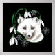 An Arctic fox gazes outward in this Art Nouveau inspired portrait. Four snowdrop flowers encircle the fox with white snowflakes. Set against a black backdrop