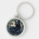 Art Nouveau Black Cat Celtic Key Chain with Emerald Green Highlights