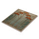 The "Art Nouveau Bloom Ceramic Tile" showcases a beautifully intricate floral design with stylised flowers that radiate warmth and elegance. The flowers, in rich shades of orange and red, are gracefully intertwined with slender, flowing stems and leaves, creating a harmonious and organic composition. The background transitions smoothly from soft greens to calming blues, enhancing the natural beauty of the design. The tile's pattern reflects the fluid and intricate lines of the Art Nouveau movement, making it a perfect blend of artistic craftsmanship and functional decor. Ideal for adding a touch of sophistication to kitchens, bathrooms, or living spaces, this ceramic tile is a testament to the timeless appeal of Art Nouveau design.