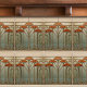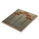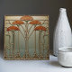 The "Art Nouveau Bloom Ceramic Tile" showcases a beautifully intricate floral design with stylised flowers that radiate warmth and elegance. The flowers, in rich shades of orange and red, are gracefully intertwined with slender, flowing stems and leaves, creating a harmonious and organic composition. The background transitions smoothly from soft greens to calming blues, enhancing the natural beauty of the design. The tile's pattern reflects the fluid and intricate lines of the Art Nouveau movement, making it a perfect blend of artistic craftsmanship and functional decor. Ideal for adding a touch of sophistication to kitchens, bathrooms, or living spaces, this ceramic tile is a testament to the timeless appeal of Art Nouveau design.