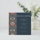 Indulge in the enchantment of the past with our vintage floral wedding save the date card. Inspired by the iconic patterns of William Morris, this design feature a mesmerising blend of teal blues, pinks, creams, and green. The intricate floral patterns, reminiscent of the Art Nouveau era, this design adds vintage allure to your special day. The elegant vintage font on a dark blue background provides a striking contrast to the vibrant floral backdrop. This timeless design captures the essence of classic romance, making it the perfect choice for couples seeking a truly unique and unforgettable invitation. Created by Simply Farmhouse Press.
