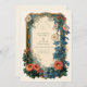 A richly detailed Art Nouveau wedding design, showcasing an ornate botanical frame with bold florals in jewel tones. With intricate vintage elements and graceful linework, this classic style is perfect for couples seeking a refined, timeless aesthetic for their wedding celebration.
