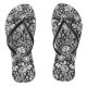Flip-flops in a William Morris floral damask wallpaper pattern, digitally enhanced and coloured in white on a black background