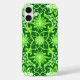 Phone case in an Art Nouveau textile pattern, based on a vintage William Morris chinoiserie ceramic tile design, digitally rendered and coloured for a soft, watercolor effect - lime green and white on a deep emerald green background