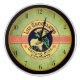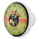 Art nouveau Lily chocolate company clock advertisement. In colours of green, pink, gold and black and embellished with an illustration of white lilies.