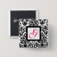 ART NOUVEAU DAMASK SQUARE MONOGRAM,pink fuchsia 15 Cm Square Badge