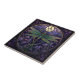 Introducing the Art Nouveau Dragonfly Tile from the Swamp Collection. This decorative 4.25 x 4.25 inch ceramic tile features an intricately detailed dragonfly design in art nouveau style. The vivid purple, emerald green, golden yellow, and jet black motifs have an almost ultraviolet quality. Part of a set of 12 Gothic-inspired tiles with bats, frogs, and other swamp creatures. Perfect for kitchen backsplashes, bathrooms, and accent walls. The nature-inspired dragonfly tile adds an elegant yet edgy ambiance. Made from durable printed ceramic tile that's water-resistant and easy to clean. Bring intrigue and allure to your space with this singular dragonfly accent tile!