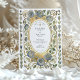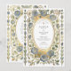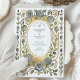 Introduce your wedding with unforgettable elegance using this stunning Art Nouveau-inspired invitation. This design features a sophisticated watercolor illustration of stylised roses in beautiful shades of dusty and slate blue, each accented with a touch of antique gold. The unique blue florals are intertwined with soft sage green leaves and flowing vines, creating a luxurious and artistic border. An ornate, textured gold oval frame encloses your wedding details, which are set in a timeless combination of serif and script fonts. This invitation is perfect for the couple seeking a unique, artful, and supremely elegant aesthetic for their vintage, formal, or autumn wedding.