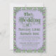 An elaborately detailed Art Nouveau wedding invitation featuring a pattern of lilac lovebirds and lavender butterflies in profile perched atop scrolling vines of purple thistle on a light green and cream dotted background. A pairing of elegant fonts has been carefully selected to accompany this invitation's decorative floral announcement text, however, they can be changed to meet your needs. You can also change their colors, as well as the color of the announcement text.
