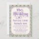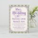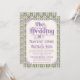 An elaborately detailed Art Nouveau wedding invitation featuring a purple thistle scroll and vine striped pattern on a light yellow background with intricate yellow details. A pairing of elegant fonts has been carefully selected to accompany this invitation's decorative floral announcement text, however, they can be changed to meet your needs. You can also change their colors, as well as the color of the announcement text.