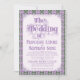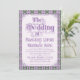 An elaborately detailed Art Nouveau wedding invitation featuring a purple thistle scroll and vine striped pattern on a light purple background. A pairing of elegant fonts has been carefully selected to accompany this invitation's decorative floral announcement text, however, they can be changed to meet your needs. You can also change their colors, as well as the color of the announcement text.