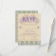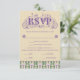 An elaborately detailed Art Nouveau design featuring a purple thistle scroll and vine striped pattern on a light yellow background with intricate yellow details. A pairing of elegant fonts has been carefully selected to accompany this card's decorative floral RSVP text, however, they can be changed to meet your needs. You can also change their wording and colors, as well as the color of the RSVP text, and hide any unnecessary choices in the editing panel.