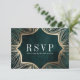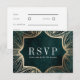 Art Nouveau faux gold RSVP, , a beautiful gilded design, with intricate patterns bordering a striking text. Perfect for drama with a hint of gothic luxury. Charcoal, Dark emerald and grey backgrounds, with a choice of foil effect details. The suite pairs well with crisp white envelopes and matching belly bands, or for added luxury choose one of the complimentary envelopes for a maximum effect. See the whole matching suite here https://bit.ly/2GX1wCJ